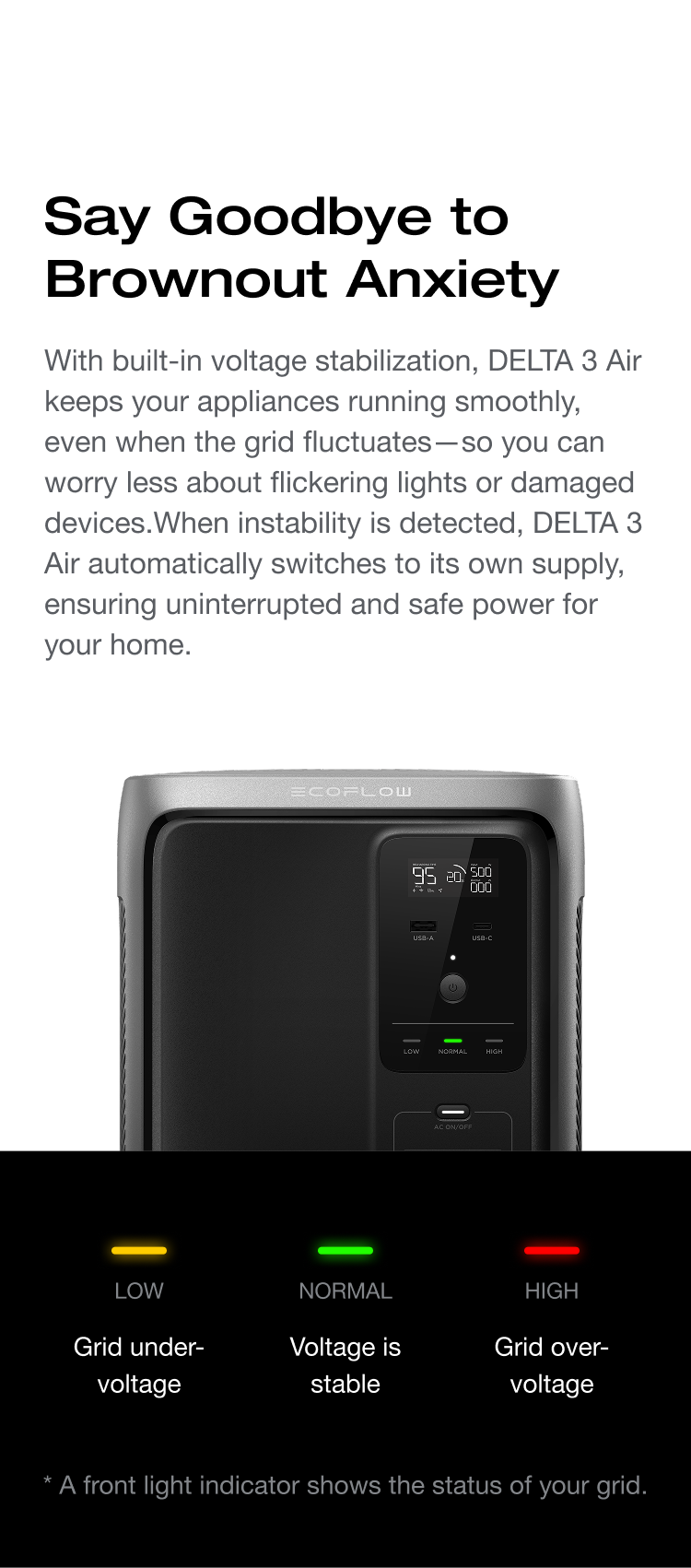 With a switchover speed as fast as 10ms, DELTA 3 Air instantly takes over when the grid goes down. Your lights stay on, your work continues, and your family’s essentials remain powered—without a single interruption.